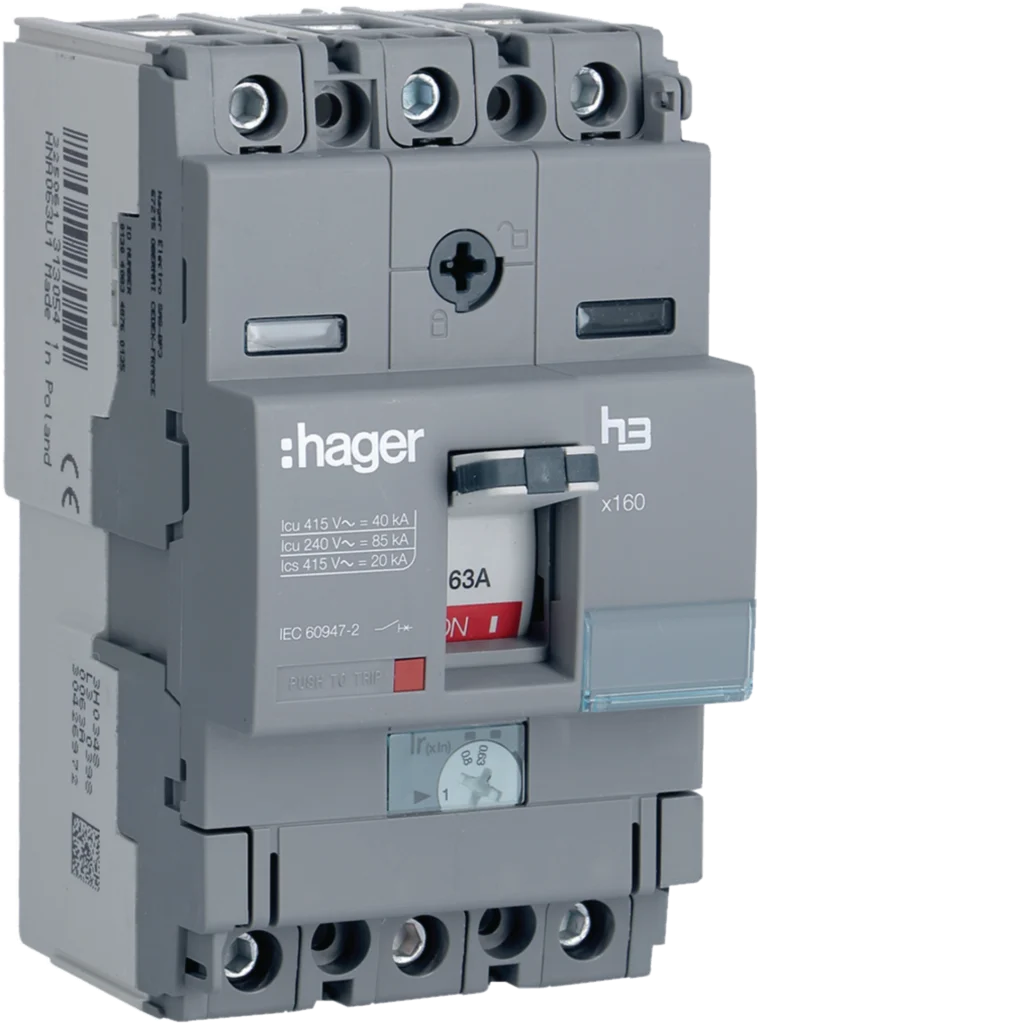 Interruptor automático de caja moldeada X160 3×63 A, 85kA/230V – TA/MF IEC 60947-2.